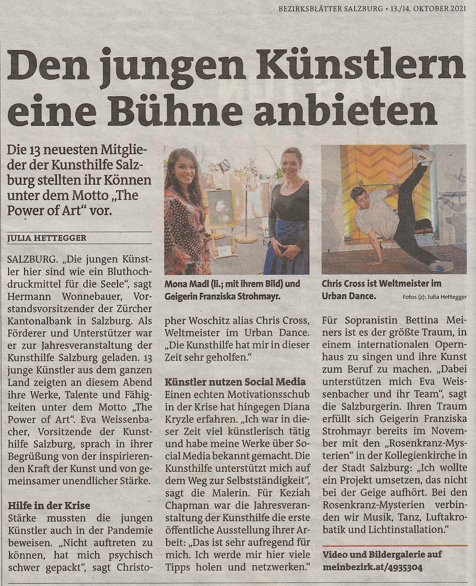 13 junge Künstlerinnen und Künstler präsentierten im Rahmen der Kunsthilfe Jahresveranstaltung im Oktober 2021 im Gwandhaus mittels einer Gemeinschaftsausstellung je ein Werk, um die Menschen durch die Kraft der Kunst zu begeistern. Besonders bewegend war auch die Freude der jungen Künstler an der Möglichkeit, erstmals auszustellen und sich auszutauschen.